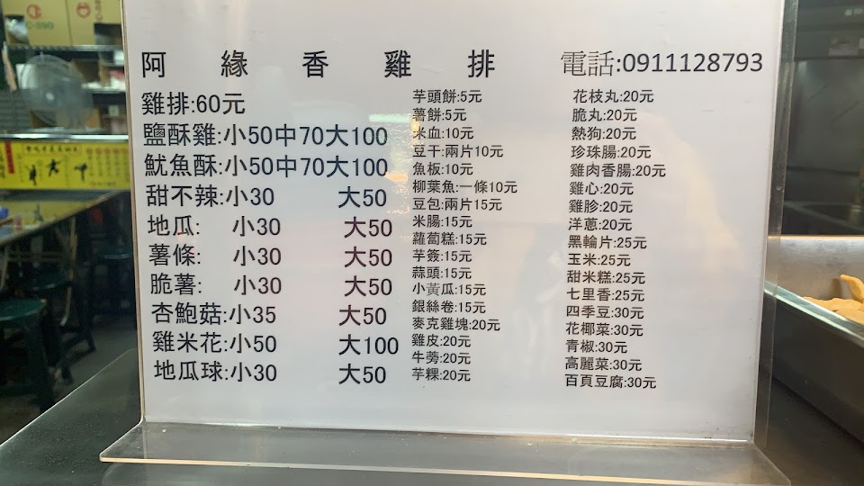買了雞排($55)、甜不辣(小$20)、豆包($15)、百頁豆腐($30)、鹹酥雞(小$40),用電話點餐全部小辣,過去拿,再帶回家,吃起來沒辣,我很少食物沒吃完,感謝家人完食。可能現場吃才美味。