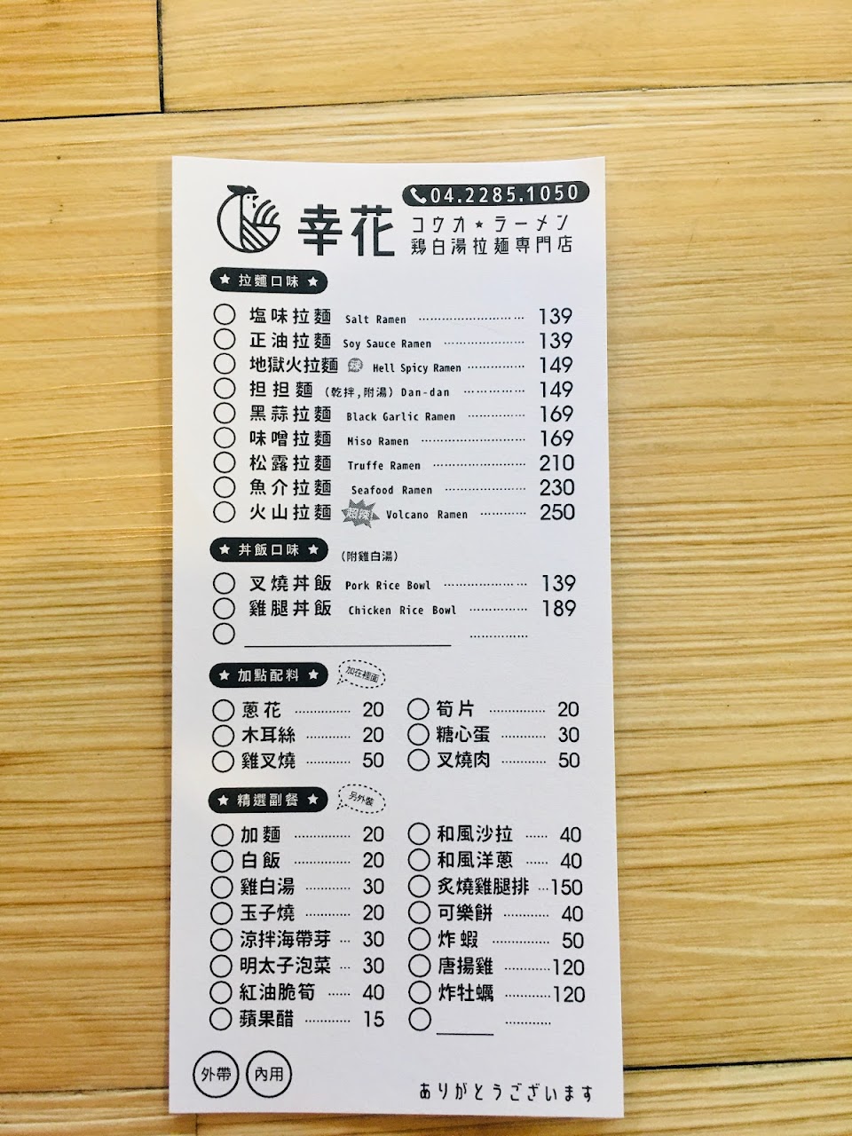2024最新在地推薦餐廳的菜單_幸花鷄白湯拉麵 (南區國光店)的菜單、圖片