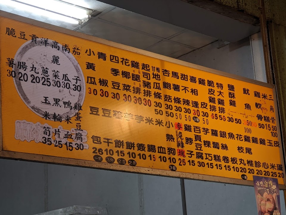 推薦的鹹酥雞店,食材很多。老闆老闆娘營業從下午到半夜,真材食料用心經營。