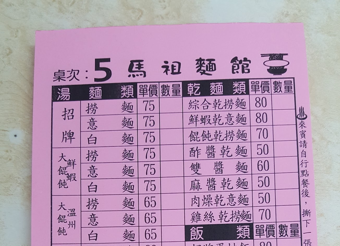 有餛飩、豬肉和魚肉,淋上招牌肉醬,馬祖麵的特色醬汁有花生的香味
