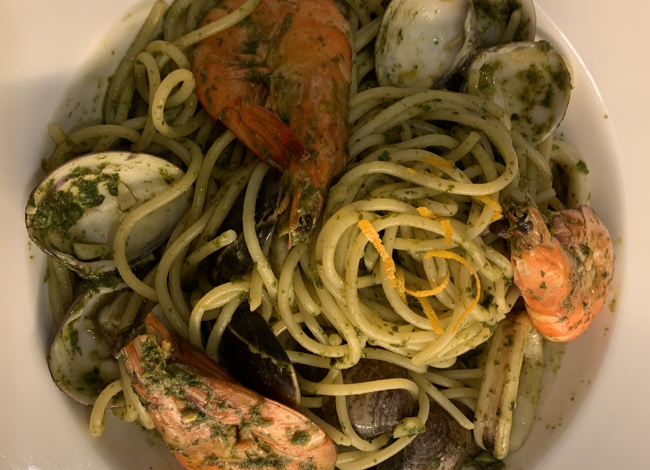 這個青醬蛤蜊義大利麵嚐起來彷彿它有話想對你說似的,但當你再定睛一看,仔細聽,會發現其實是老闆?