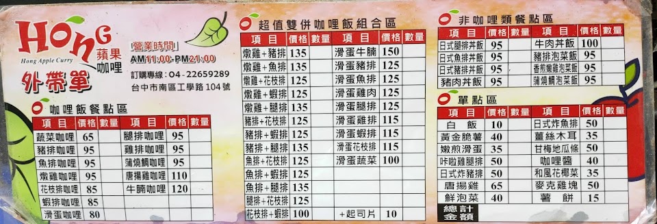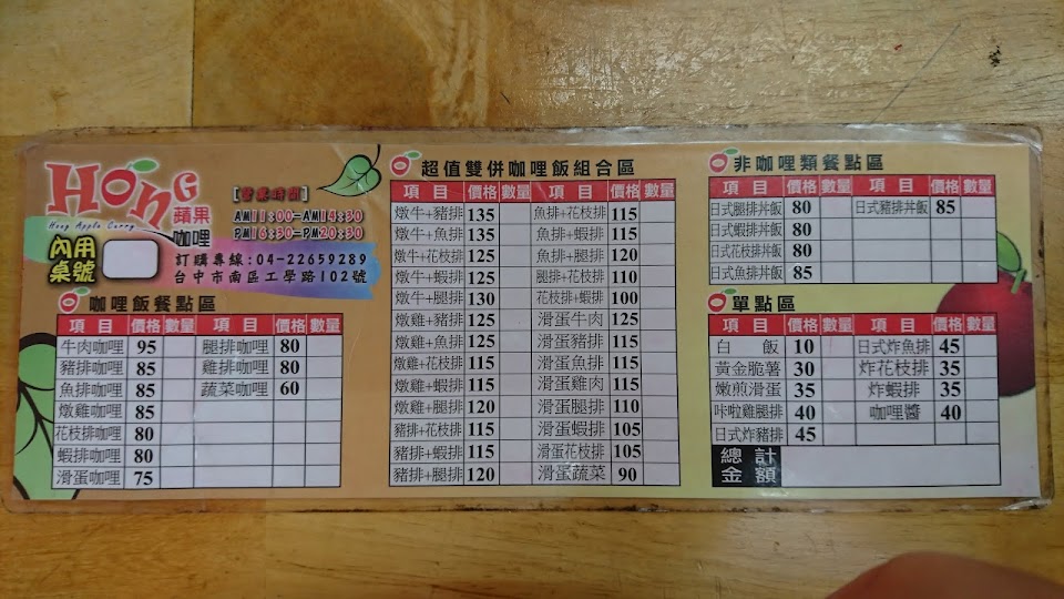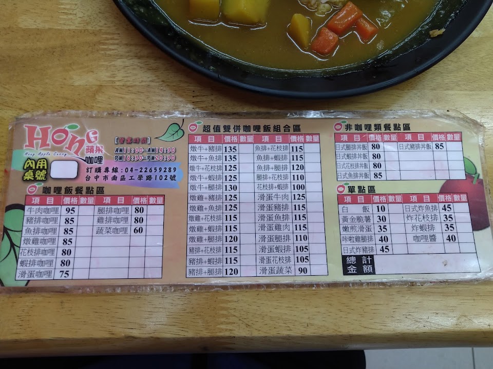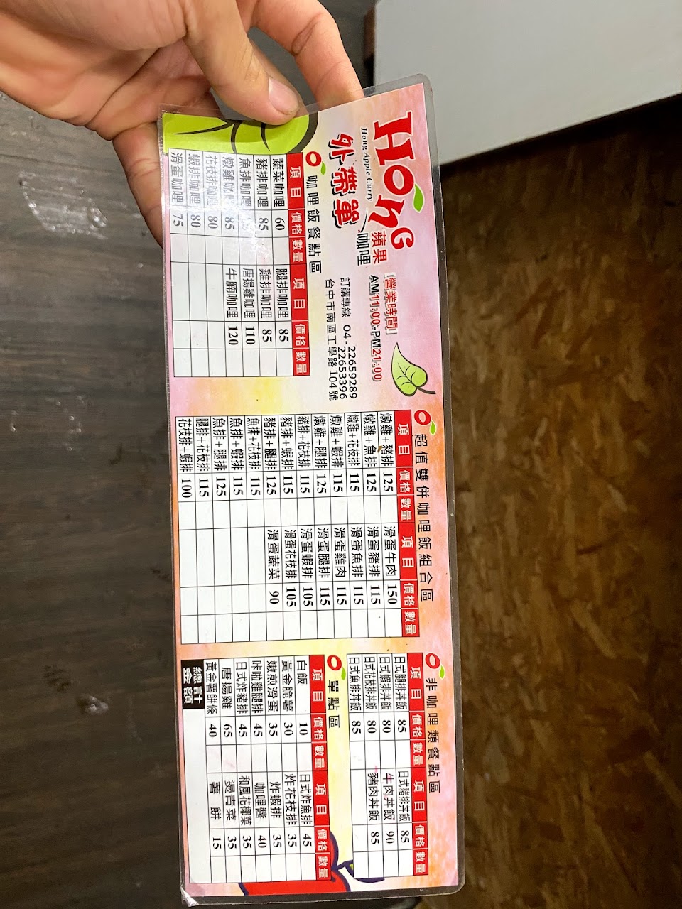 2024最新在地推薦餐廳的菜單_Hong蘋果咖哩的菜單、圖片