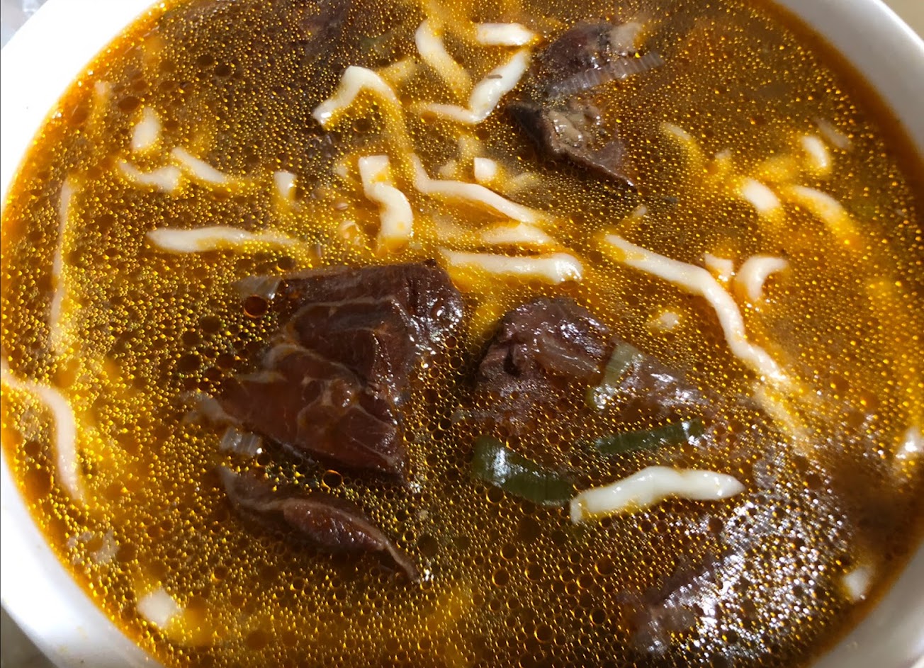 說說我的感想 牛肉湯頭熬煮了多種牛骨、牛肉和藥材 喝下去層次蠻豐富不會死鹹 麵條也Q彈有嚼勁 不過黃牛肉就略柴不夠軟嫩 配油條吃這點沒怎麼驚艷