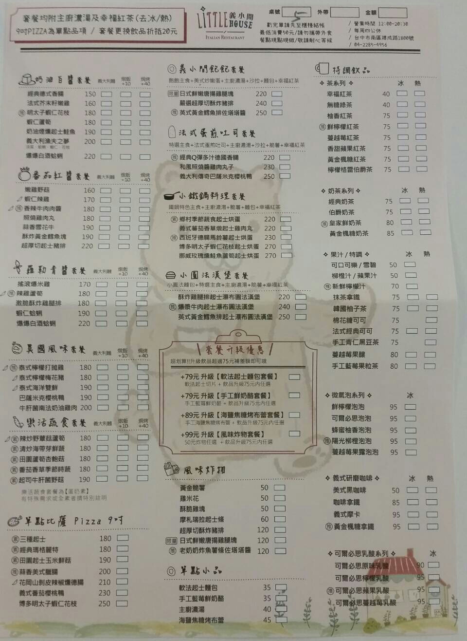 2024最新在地推薦餐廳的菜單_義小間 Little house | 義大利麵 燉飯 焗烤 PIZZA 早午餐 歐姆蛋 甜點 下午茶 咖啡 飲料的菜單、圖片