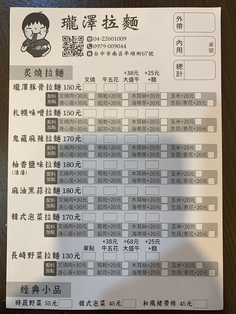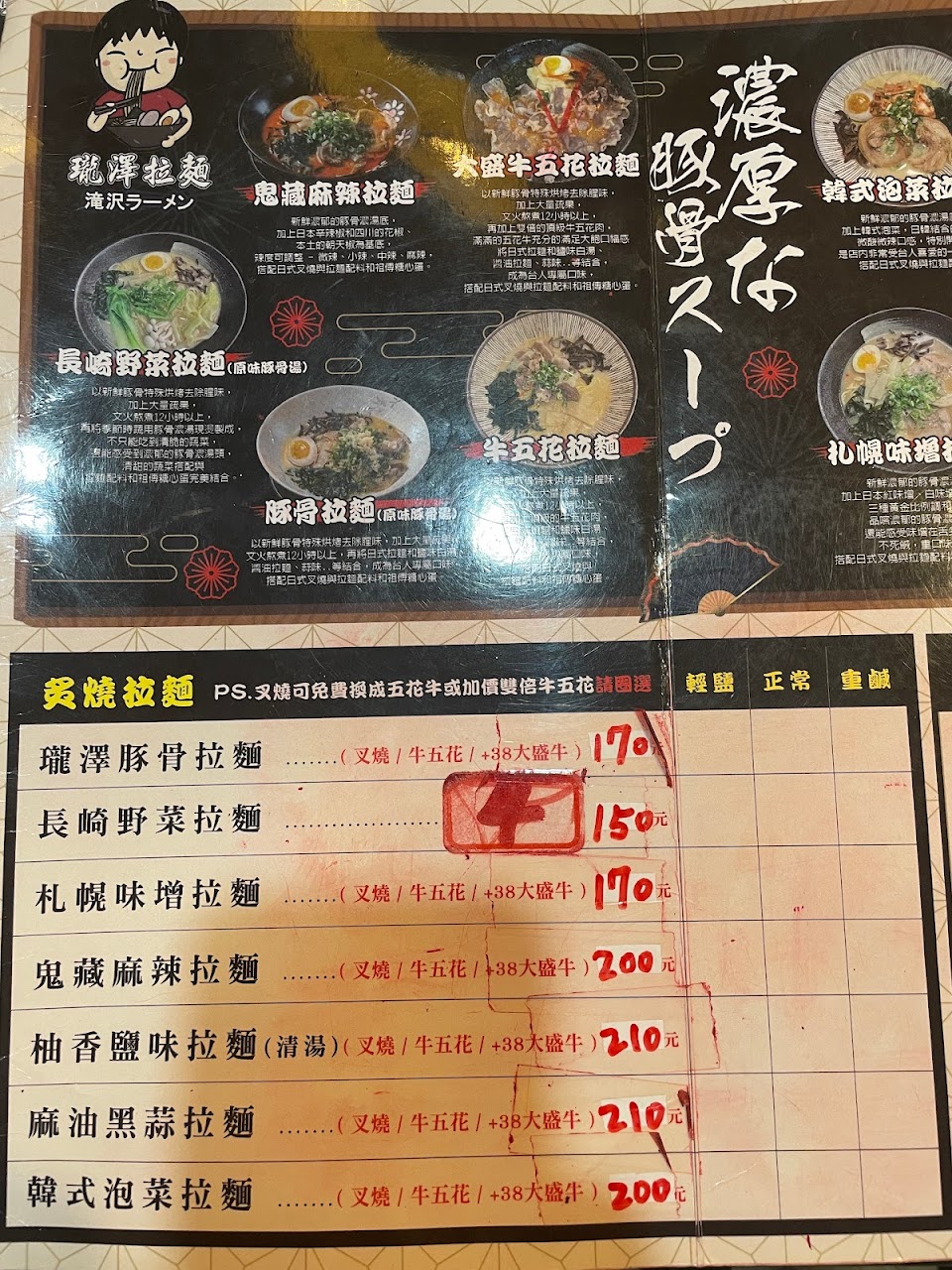 2024最新在地推薦餐廳的菜單_瓏澤拉麵的菜單、圖片