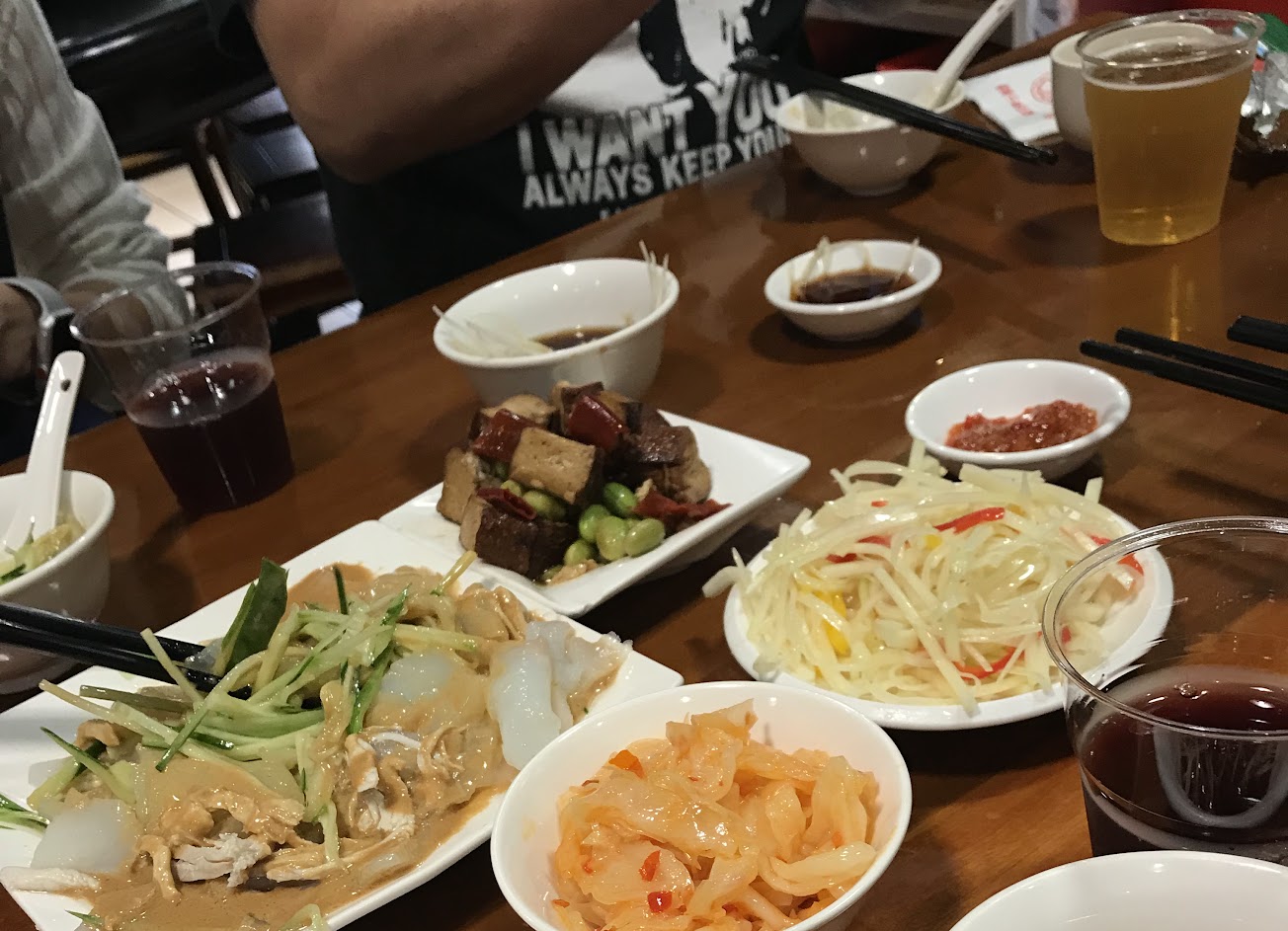 上菜滿快的,小菜黑豆乾很硬不好入口,絲瓜湯包吃不太出來絲瓜的鮮味,麻辣鴨血只有湯頭辣鴨血細粉沒什麼入味,蔥油餅跟茴香餅吃起來很油,茴香的味道讓人深刻難忘,蛤蠣絲瓜很香很鮮甜加上蝦米真的絕配,店員態度普遍都還不錯,結帳的闆娘人很客氣,假日前往要排隊半個小時以上⋯
