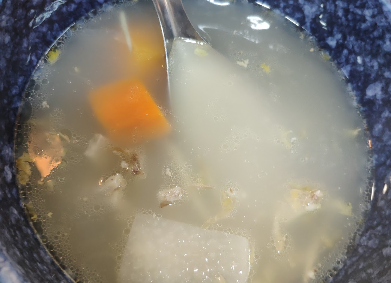湯品的湯頭是用洋蔥、蘿蔔等多種蔬菜熬煮而成,十分鮮甜可口?