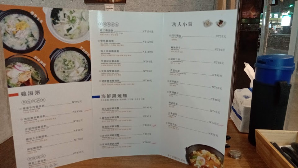 今日中午帶著太太和一歲的小朋友到這邊用餐,就坐在一樓櫃台前,小朋友因為肚子餓的關係有點不受控的一直再亂叫,因為我們點的都是粥,一開始有點燙,小朋友不太吃,不過老闆&老闆娘人超級好,主動拿了一些蛋絲給我們,讓我們可以先餵小朋友吃,後來小朋友要泡奶,因為沒有帶熱水,店家也很貼心的幫我們燒熱水給我們用,真的是很有愛心的店家,至於餐點的部分,我們點了一個皮蛋瘦肉粥/鱸魚粥還有一個寶寶粥,都不是甚麼驚為天人的山珍海味,但都非常實在,蠻推薦給平日想吃一點粥的大家