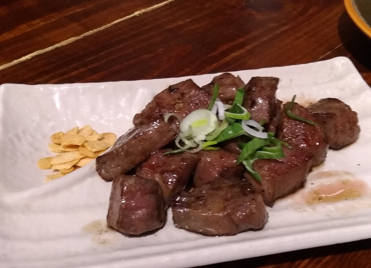 半夜突然想吃宵夜,偶然拜訪的店家,價格實在親民,每一道都超好吃~~~骰子牛真的是我最愛的一道,裝潢以紅燈籠裝飾得很顯眼,也很有溫暖的感覺,下次會再訪。