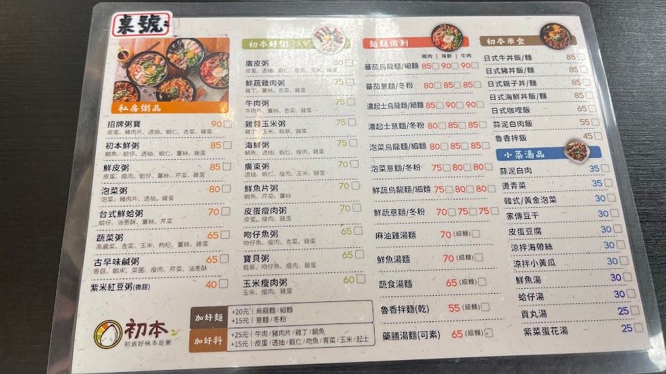 2024最新在地推薦餐廳的菜單_初本粥舖(台中東興店)的菜單、圖片