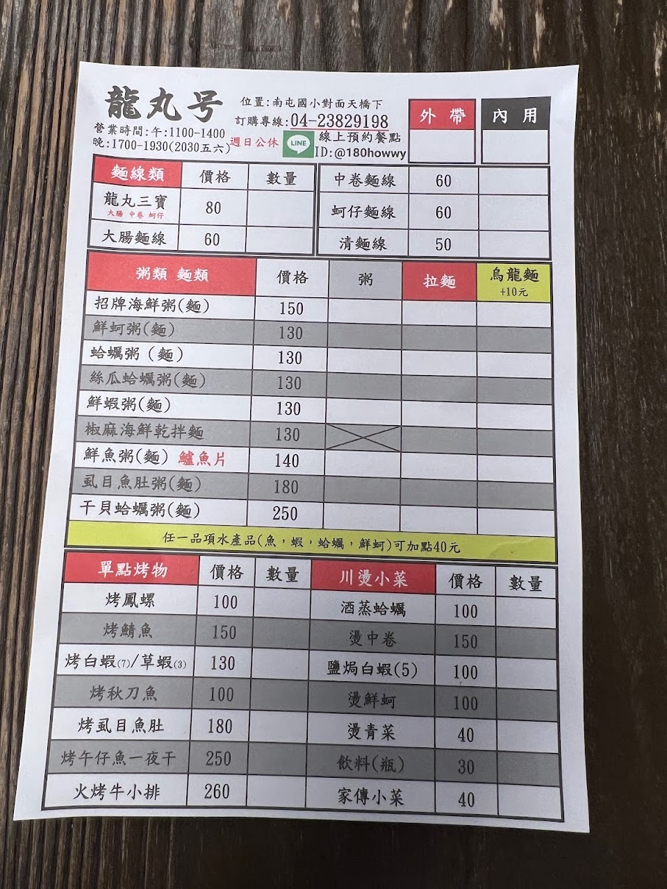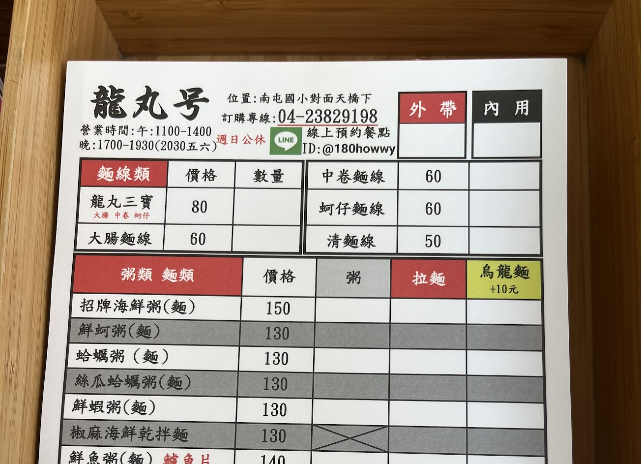2024最新在地推薦餐廳的菜單_龍丸号海鮮粥/南屯美食/拉麵/烏龍麵的菜單、圖片