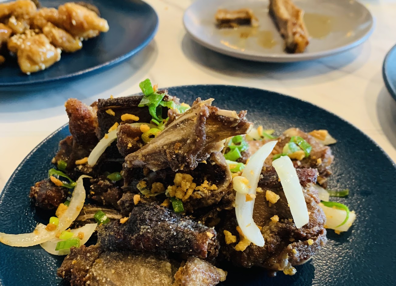 涼菜三拼就是能想像的味道,小黃瓜對我來說偏酸,腐乳+雲耳特別的調味,黃金泡菜就是有點蒜味的那種;三寶拼盤好吃,鴨翅入味、鴨胗是好咬的、鴨腱腸沒那麼Q,整盤是熱的不是冷盤,所以像滷味;醬料有三種(季節蘸水、花椒鹽、甜麵醬),季節蘸水目前3月是使用百香果,吃起來又有泰式酸辣醬的味道,花椒鹽吃起來就是乾辣椒,微辣不麻,甜麵醬味道就是那樣,比外面再稀一點;蘿蔔糕外皮酥,炒乾辣椒微辣好吃,梅子雞球就是開胃,即使淋上有點勾芡的醬汁,雞球依舊酥脆有口感,合我胃口。