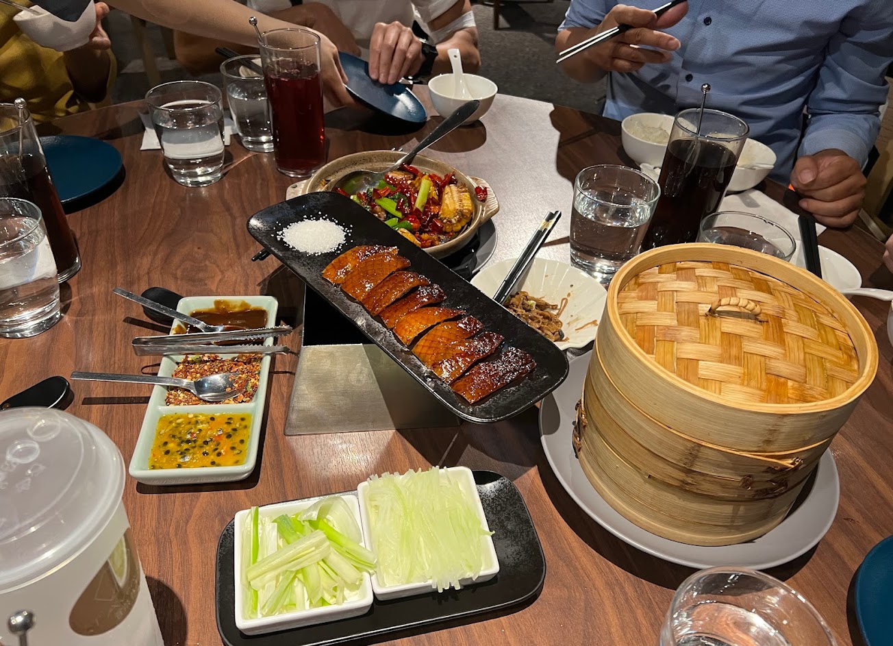 菜色豐富,服務態度親切,烤鴨超好吃,肉質鮮嫩多汁,餅皮超薄夾著鴨肉及蔥很好吃,環境極優,值得推薦的餐廳。