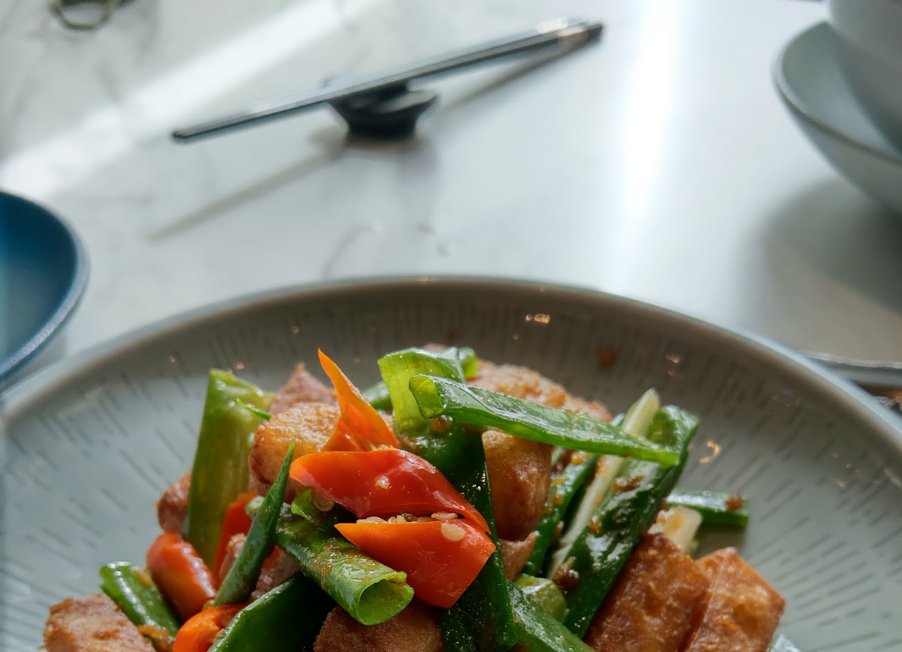 陳釀梅子雞球 瑤柱醬爆蘿蔔糕 享鴨 炒水蓮 甘樹子水蓮