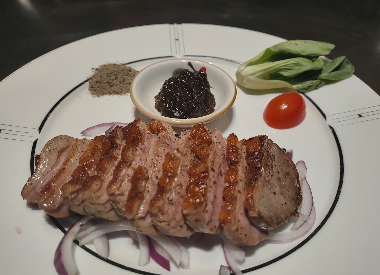 紅酒鴨肉不會太乾,皮微焦的很恰到好處