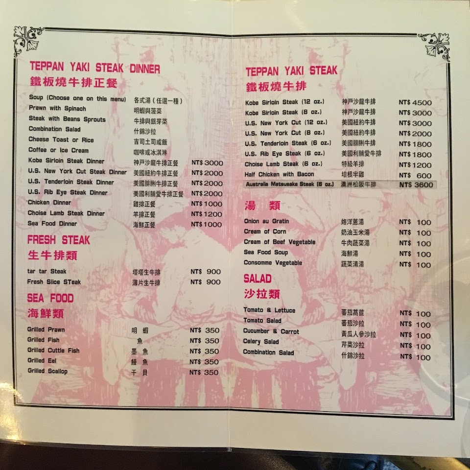 近 50 年的老招牌,每次想吃鐵板燒都會來,食材沒有花俏只有新鮮。 昨晚第一次嘗試點羊排,意外的驚艷,完全沒有羊騷味以外,肉質非常軟嫩。 用餐中所提供的茶葉完全不馬虎,很講究,真的是喝了會回甘的好茶葉。 唯一唯一唯一小小個人遺憾,飯後的咖啡是調好+糖的,因為個人是不食用甜食飲料,也因為沒有先問清楚,所以有點小遺憾。