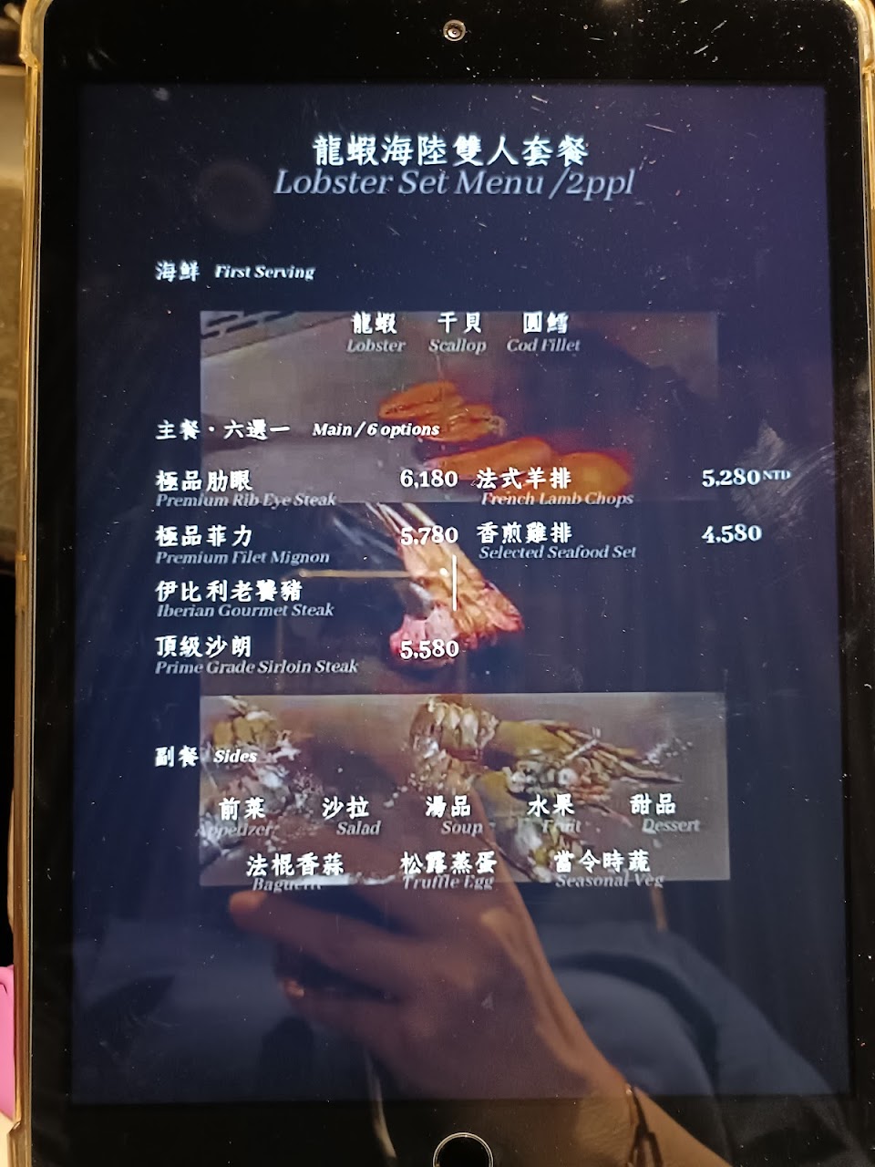 點雙人龍蝦老饕牛套餐,師傅手藝很好也很親切,無論龍蝦或是牛肉都可以吃到最原始的味道醬汁上的點綴也很棒~是一場視覺與味覺的高級饗宴