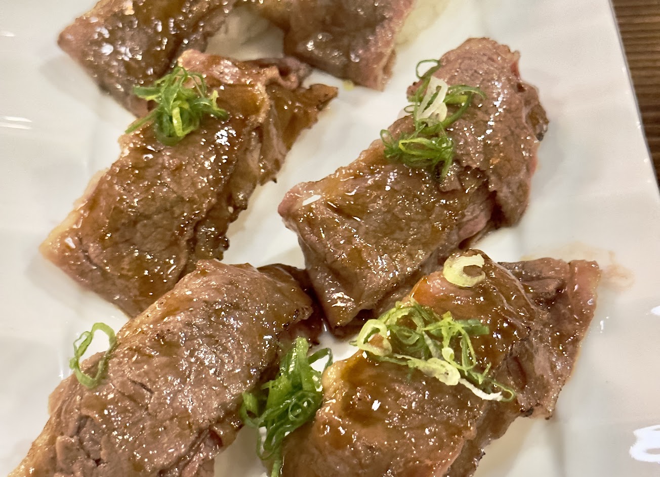炙比目魚雙牛壽司 兩貫 $180 – 比目魚的香氣 直接在嘴巴裡爆開 加上牛肉的嫩 這道要點