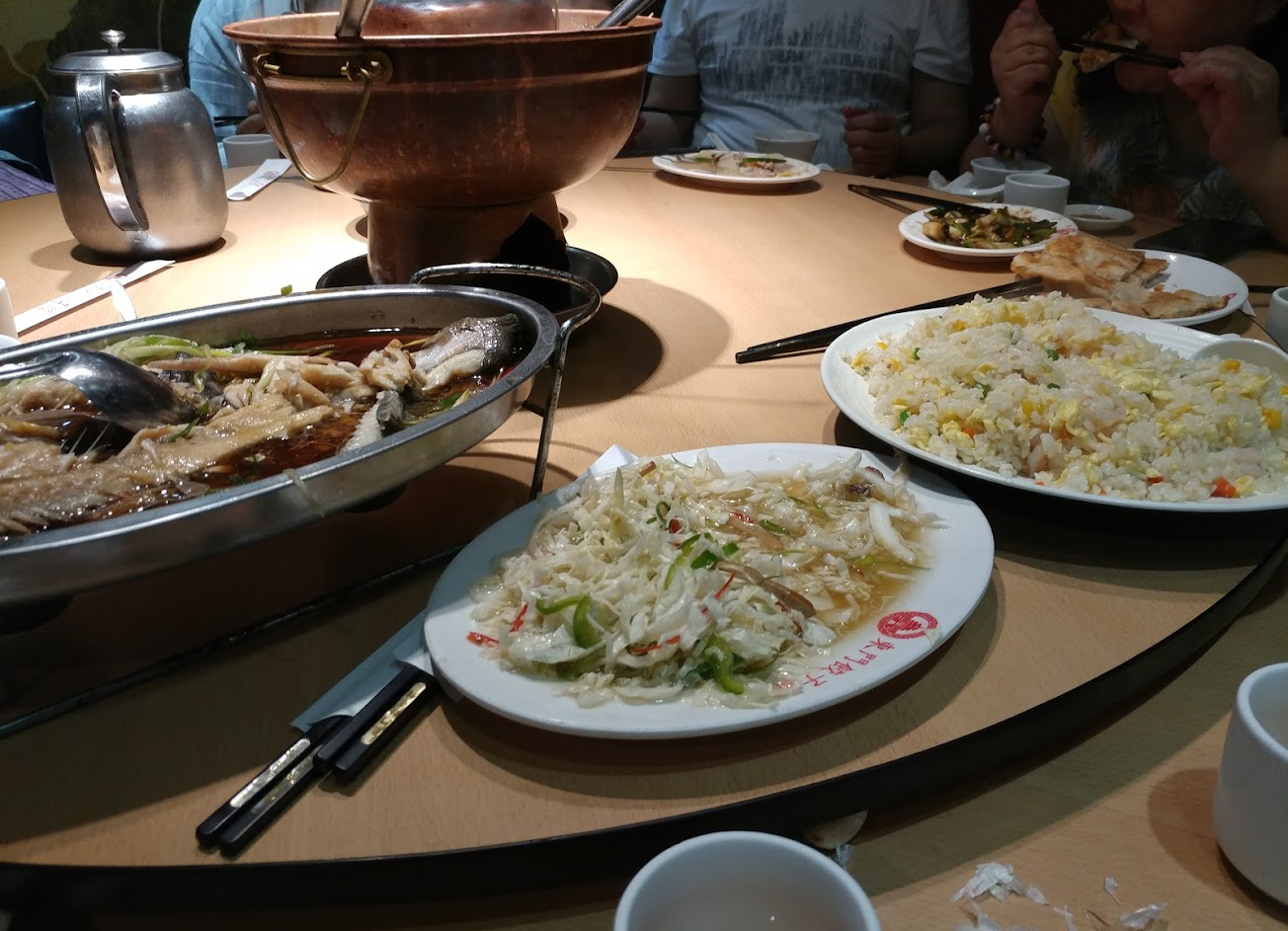 酸菜白肉鍋底下的白菜真的很多,喝到最後會有一些燒焦的部分浮出來,肉片的部分稍嫌少了一些。其他人氣菜包含蒸餃水餃鍋貼等。平均消費每人300元左右。