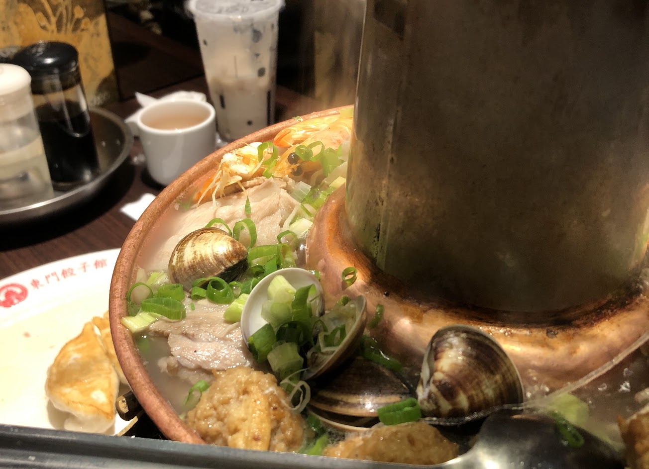 我最愛的酸菜白肉鍋就在東門餃子館了,冬季必吃,裡面有很多配料,像是酸菜、冬粉、豬肉片、肉丸、蛤蜊等,我的圖片是小鍋的,適合2-3人吃,已經可以讓你吃很飽了唷???另外他們的煎餃也超好吃? 大推! …