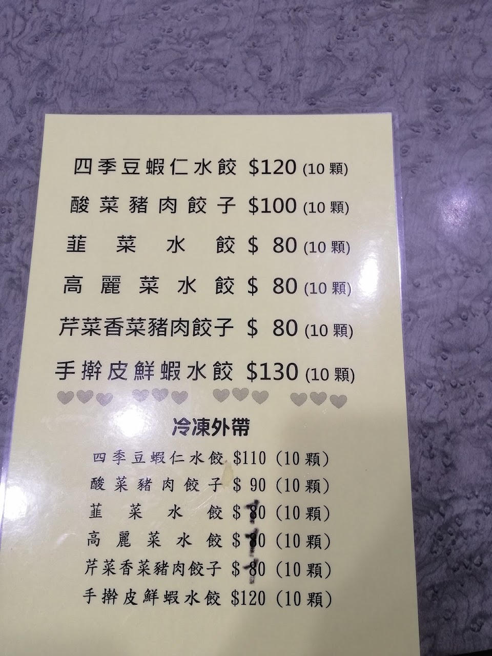韭菜豬肉水餃 $90