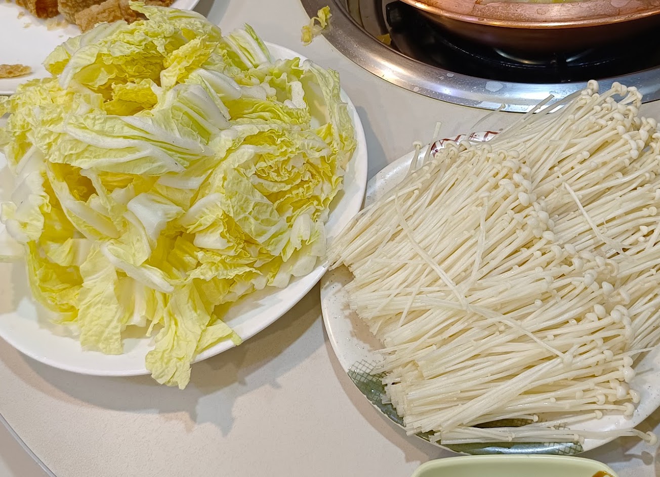 涼拌花生、菜心好吃,火鍋的酸白菜有滋有味不衝不嗆。