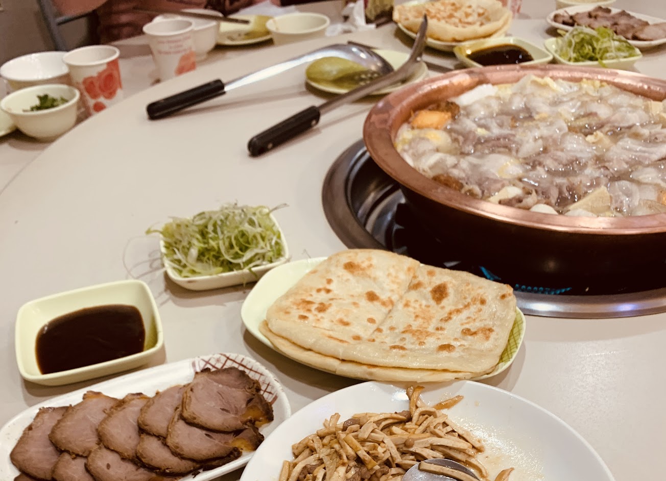 一般般的東北火鍋酸菜白肉鍋,有小鍋和大鍋的,三人建議點小鍋因份量不大大約有四塊凍豆腐,五顆丸子,三個火鍋料,白肉也是五六片,其他都是酸菜, 小鍋要690但料就一點兒完全沒有飽足感,席間與友人談話店內大嬸服務員一直關掉我們湯的瓦斯,我已經轉小火也在看著不讓它乾燒為的就是喝上熱熱的酸菜湯,可大嬸給我關了四五次吧,也不先問不解釋覺得整個破壞晚餐興致。且服務人員大嬸們不帶口罩講話嗓門又特大聲,需要注意。 餅類的不錯,其他熱炒類價格都偏高份量也小。素蒸餃八顆140元,韭菜餡料多但吃不出別家有的餡料香氣。