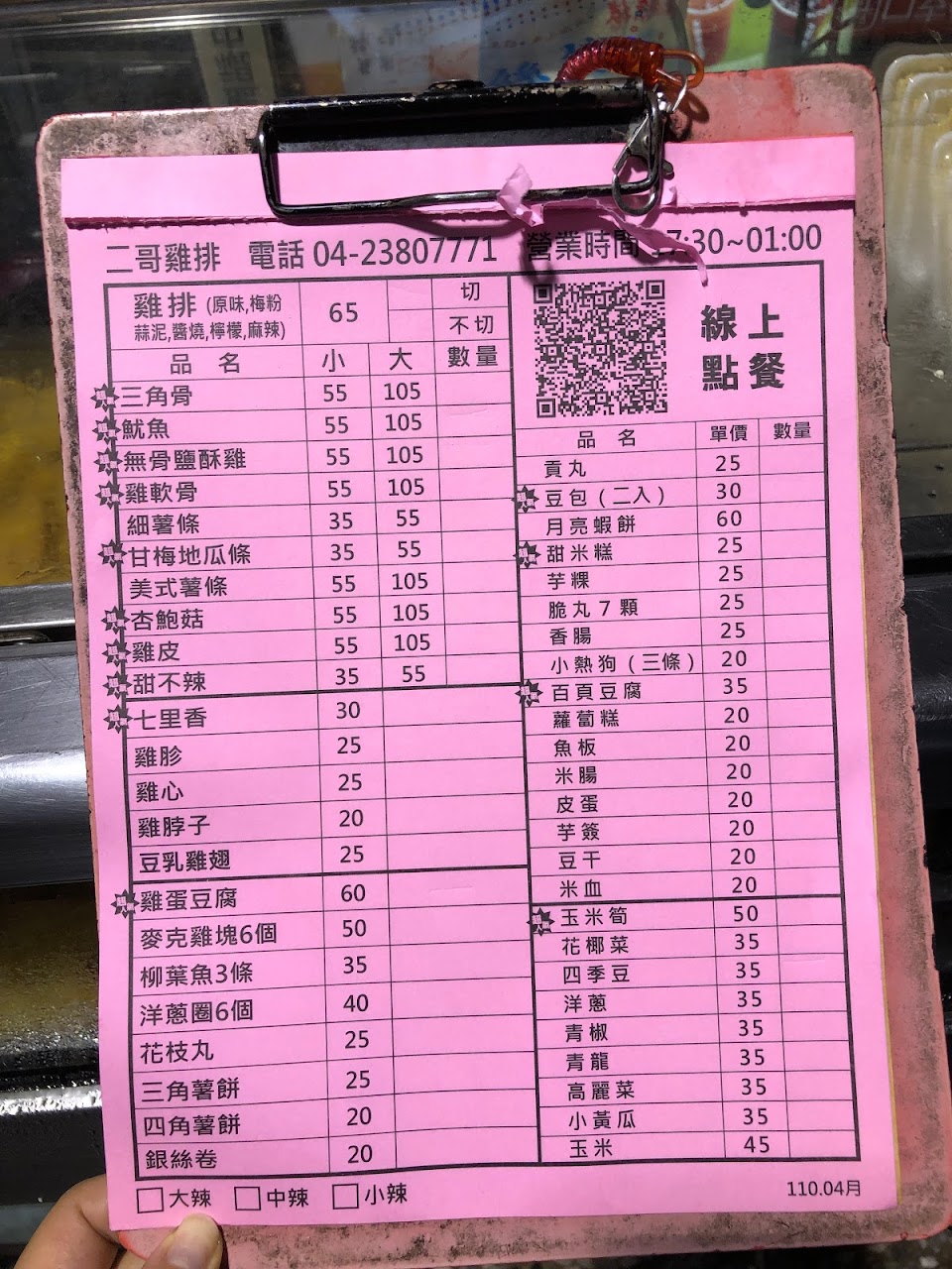 2024最新在地推薦餐廳的菜單_二哥雞排(南屯店)的菜單、圖片