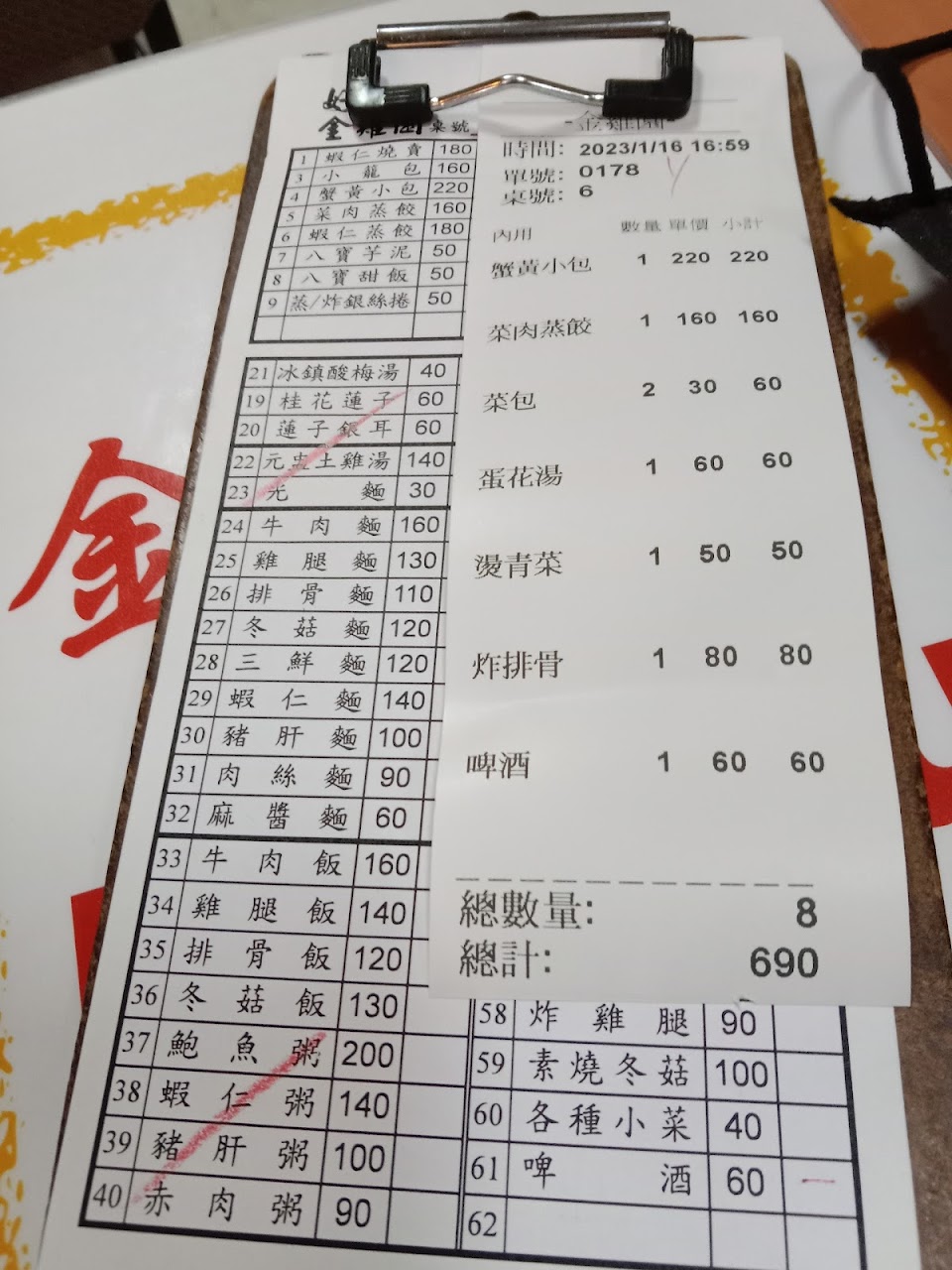 價格太貴,炸雞普通、豬肝麵麵完全沒味道、小籠包普通、燙青菜難吃、豆沙包好吃,這樣要480…我女友說炸雞她寧願吃胖老爹有打