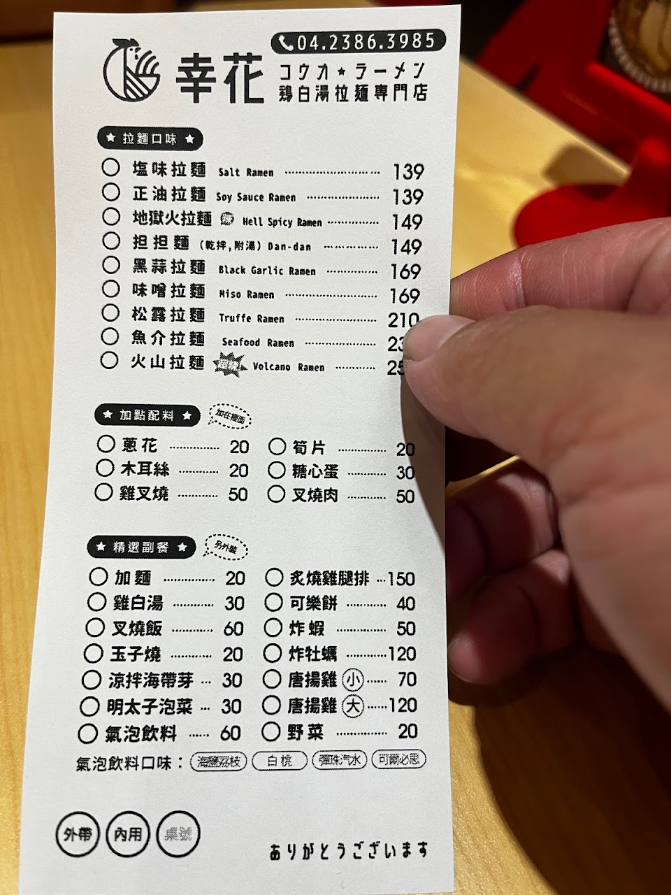 離開後才發現店員算錯錢,拉麵99+可樂餅30,算成139。