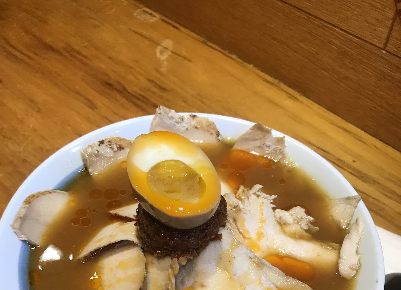 豪華版的湯較鹹且濃稠,細麵偏硬,料不多,叉燒3片(考驗刀工的厚度),玉子燒是冷的偏甜大概4*3大小,唐揚雞小份五顆,大概比雞米花大一點,以上。