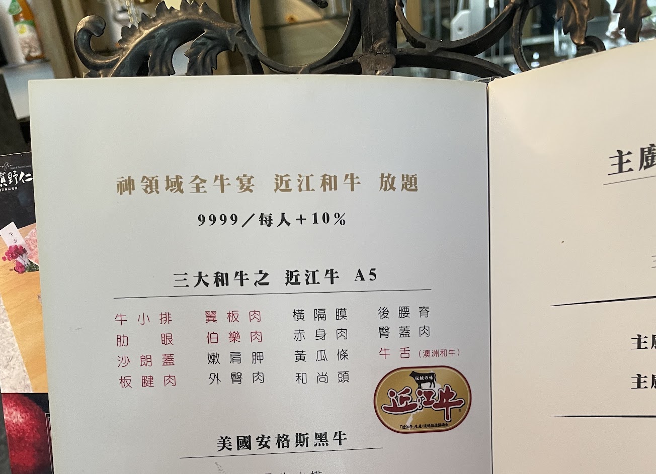 Prime/CAB牛小排柔嫩 保持濃郁牛味與油花間的平衡~澳和M9+則多汁 更強調油脂在味香上的表現~其餘梅花豬與天使紅蝦也不錯 缺點就飲料太少吧