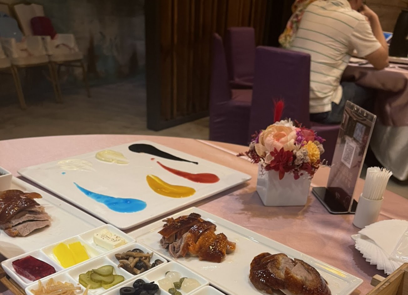 招牌的烤鴨料理在台中絕對名列前茅!類似九宮格的創意配料擺盤,讓人在視覺上有著另一番的享受!