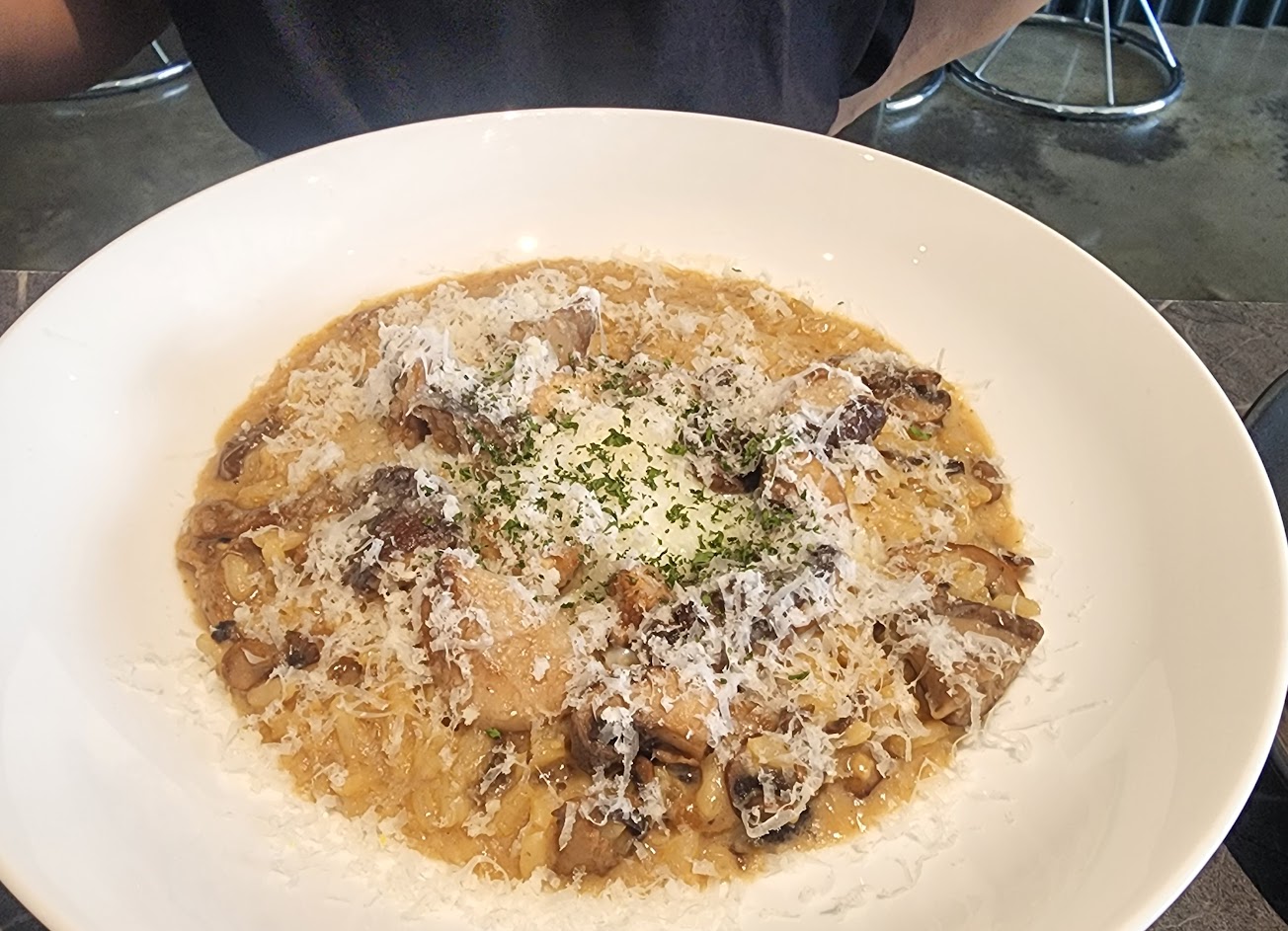和老婆來這裏用餐,第二次來了,東西蠻好吃的環境也很舒服,前菜點了凱撒沙拉和炸雞,沙拉一如既往的好吃,炸雞推薦,超級好吃,外酥內嫩,比外面的炸雞店好吃太多,主餐2份燉飯,海鮮燉飯料超級豐富,米粒屬於偏硬一點點,口感還不錯