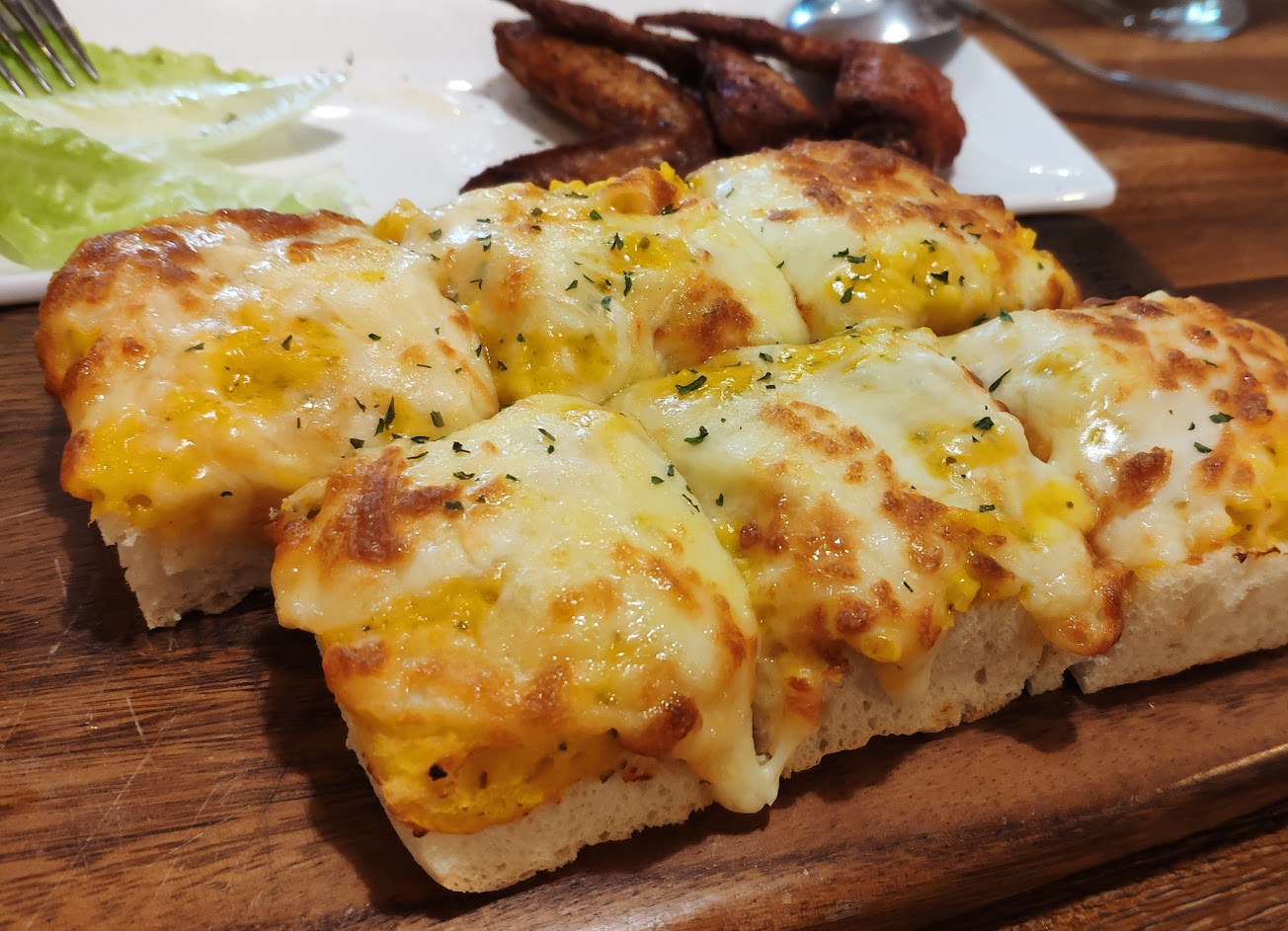 披薩很好吃,也很特別,麵包體很像厚的佛卡夏,炸的豆腐滿普通的,但是蒜味醬超加分?