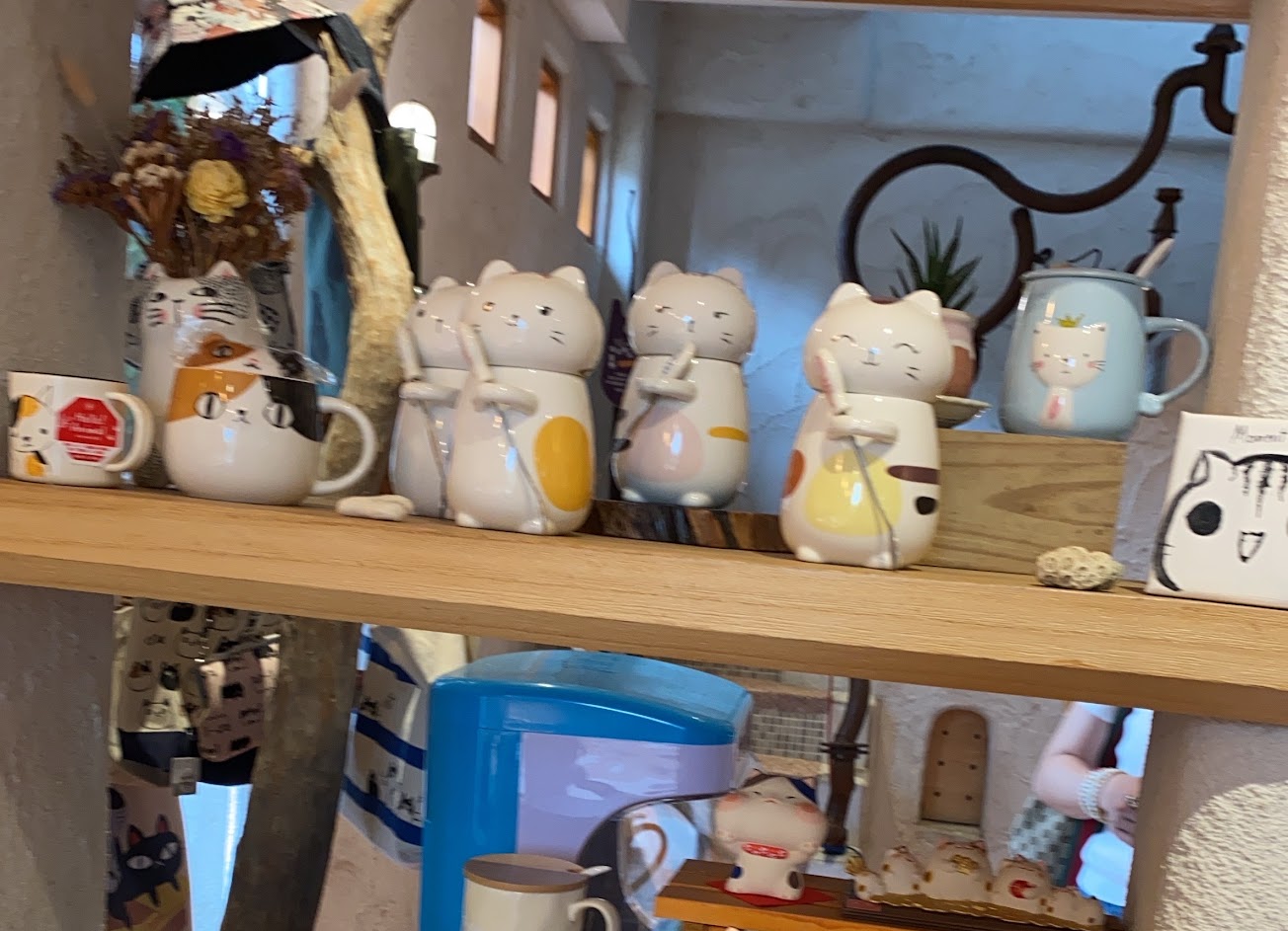 一入內是貓咪主題的各式雜貨、杯盤、飾品,然後就看到2隻可愛的店貓啦!