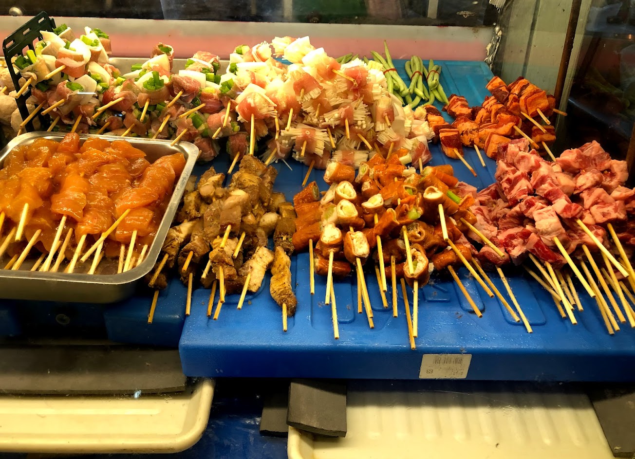 各人比較常吃的12$串物是: 米血、甜不辣、芋粿、雞塊、脆丸、 黃金魚蛋、黑輪、大黑豆干、杏鮑菇