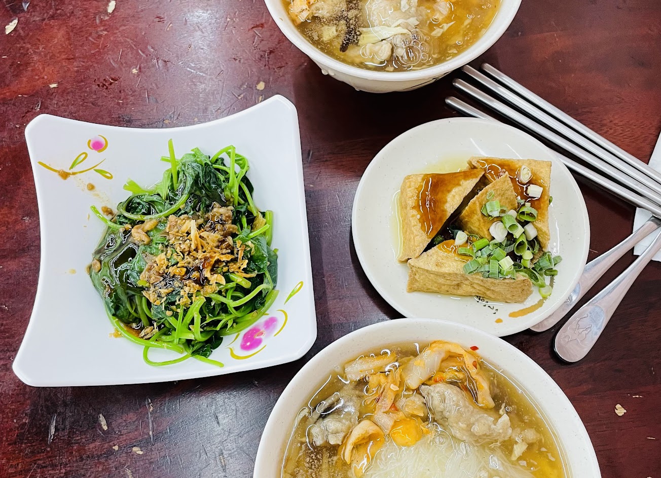 肉羹好吃、滷肉飯肥瘦剛好,燙青菜給得很大方