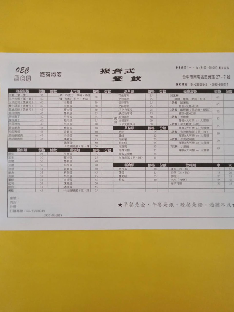 2024最新在地推薦餐廳的菜單_OEC黑白捲海苔捲飯 複合式餐飲的菜單、圖片