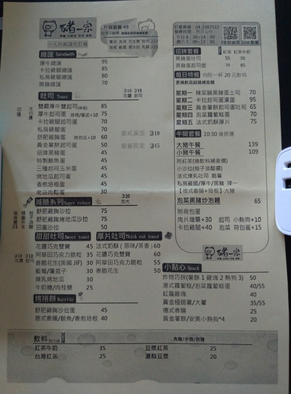 2024最新在地推薦餐廳的菜單_豬一家早餐/愛心餐/肉蛋吐司/早餐/早午餐/午餐/輕食/南屯美食/甜點/嶺東美食/漢堡的菜單、圖片