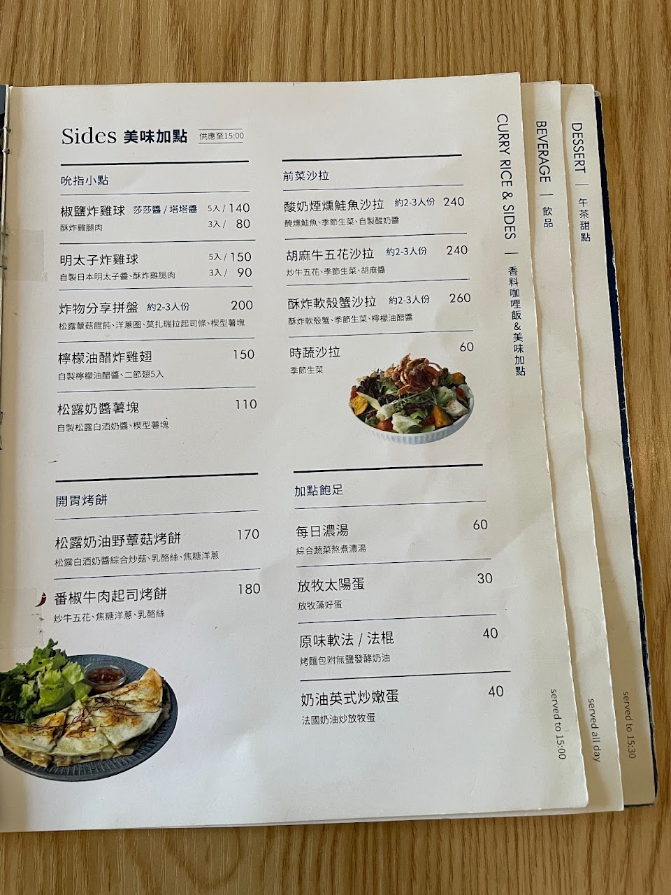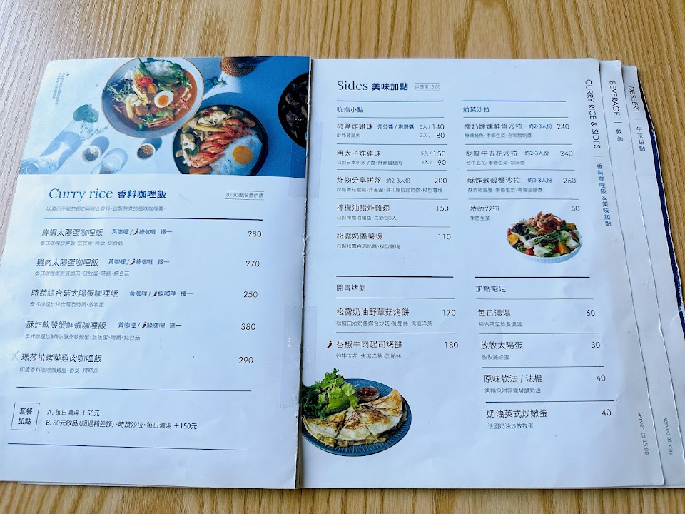 連假下午兩點半去幾乎沒客人,入座後店員會給菜單,甜點以外的項目只供應到下午3點,我點的是酸奶煙燻鮭魚早餐,都蠻好吃的,炸薯塊不會油,只是嘴裡會殘留奇怪的味道,不確定原因;朋友的雞腿排餐裡的法國吐司很優秀!應該是用切片的法棍去做的,裡面吸了滿滿的蛋汁,表面又煎的脆脆的,淋上蜂蜜很好吃!