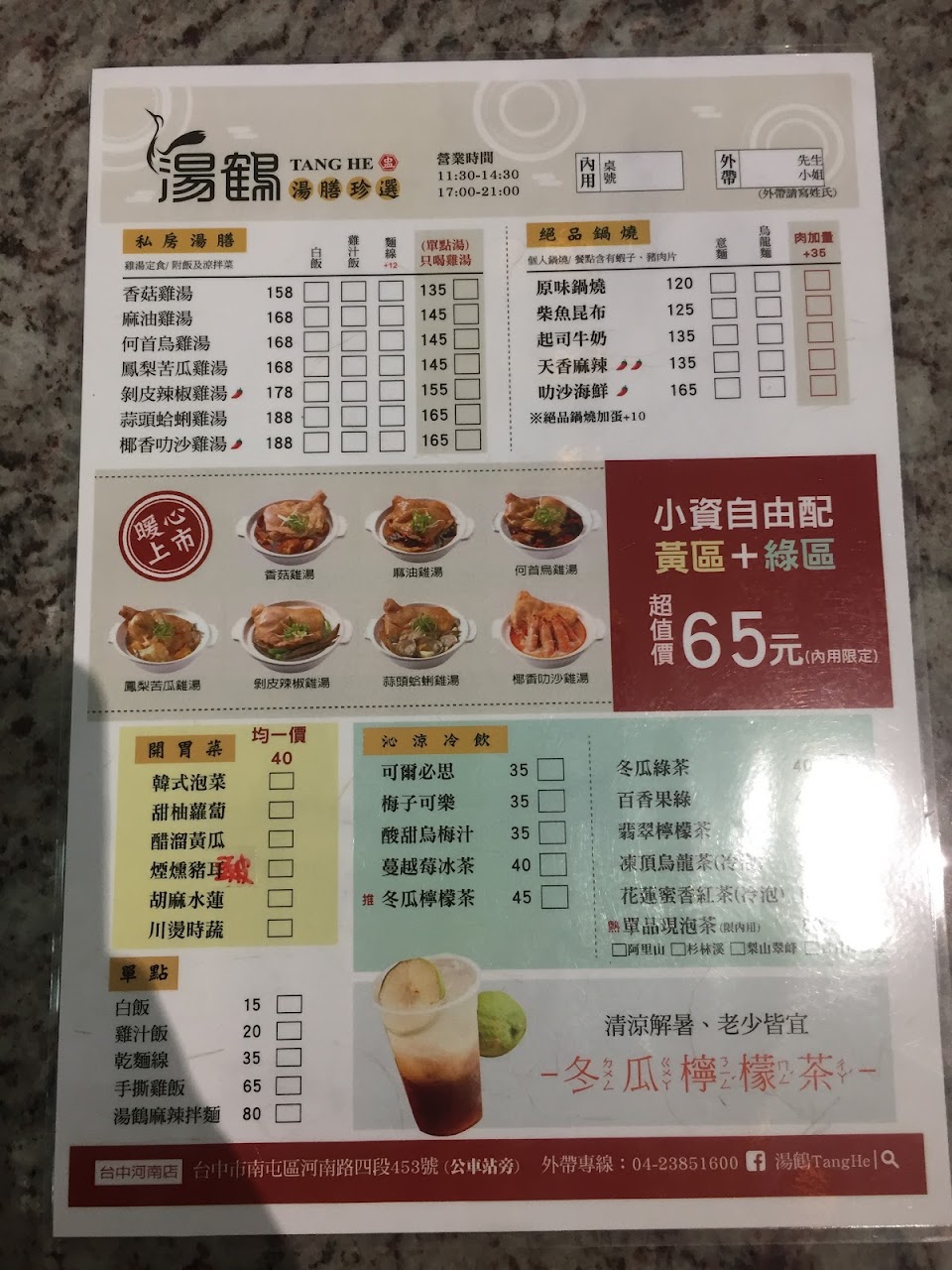 2024最新在地推薦餐廳的菜單_湯鶴Tang He – 台中河南店 – 雞湯品牌的菜單、圖片