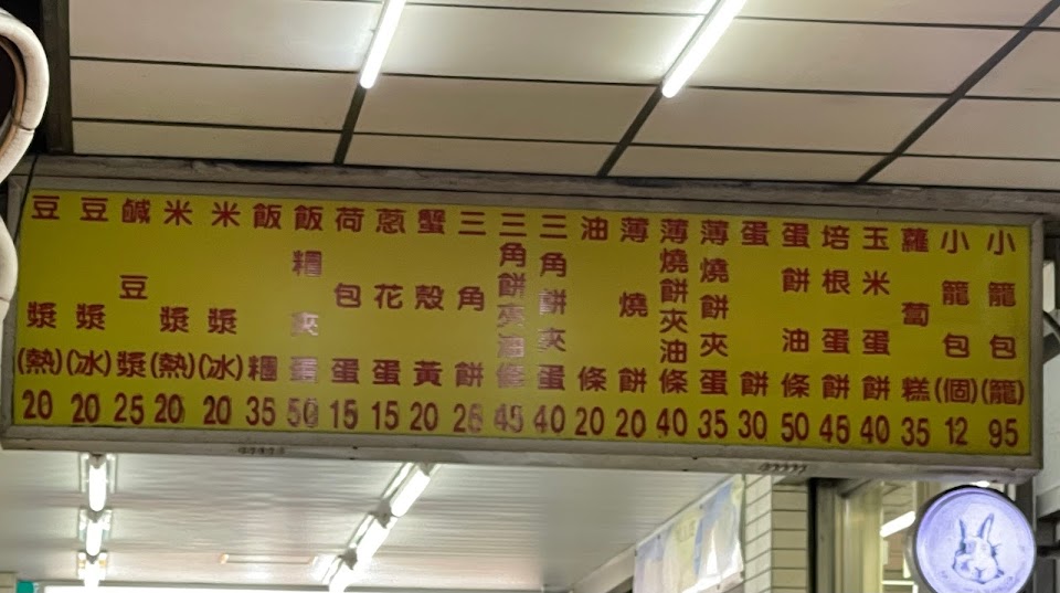 鹹豆漿好吃(目前看到台北最便宜25元,給個讚…),燒餅夾蛋可以再精進點