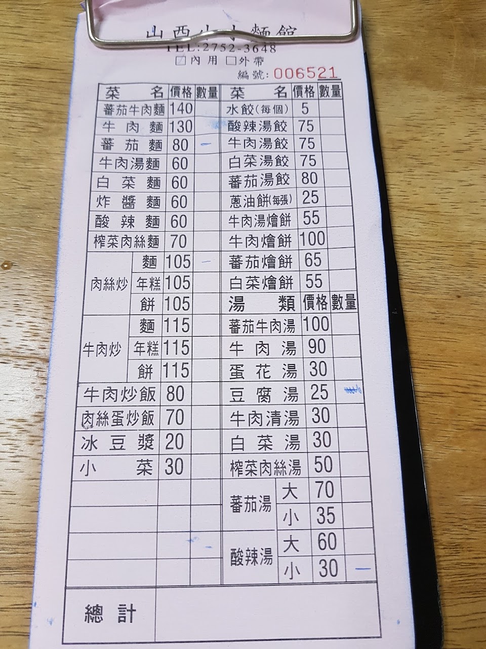 外帶沒有劃單,店家直接寫單給廚房