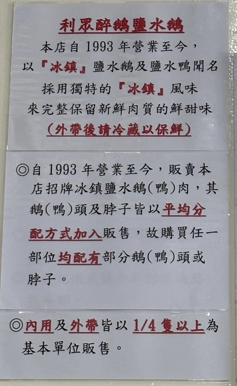 2024最新在地推薦餐廳的菜單_利眾醉鵝塩水鵝的菜單、圖片