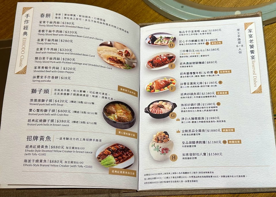 詠豐堂在大安區算中價位但有水平的上海料理,建議事先預約,主打上海菜,