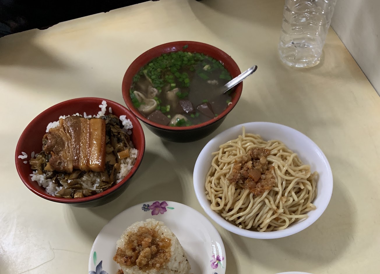 米糕的油蔥很香,上頭的肉燥個人覺得普通沒特別香,梅乾飯很香且不會死鹹,炒麵一定要加店內的源美辣椒醬味道才對,沒加醬整個很無趣。