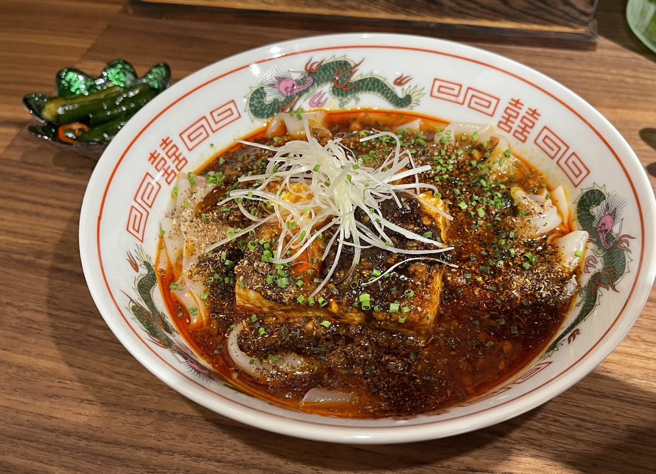 日式擔擔麵的麵條是細麵,麻婆豆腐麵的麵條是寬麵,都會附一碟小黃瓜配菜,每碗都是$260 ,份量不大,通常要加點白飯(免費)淋上麵的醬汁一起吃份量才比較夠。對於喜歡吃辣的人應該會喜歡這裡的麵,不太吃辣的也可以請老闆做小辣,應該可以接受小辣的辣度。