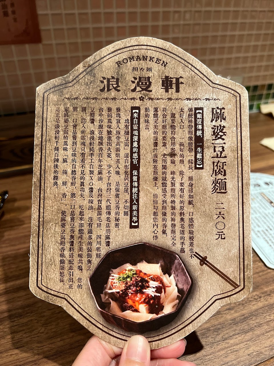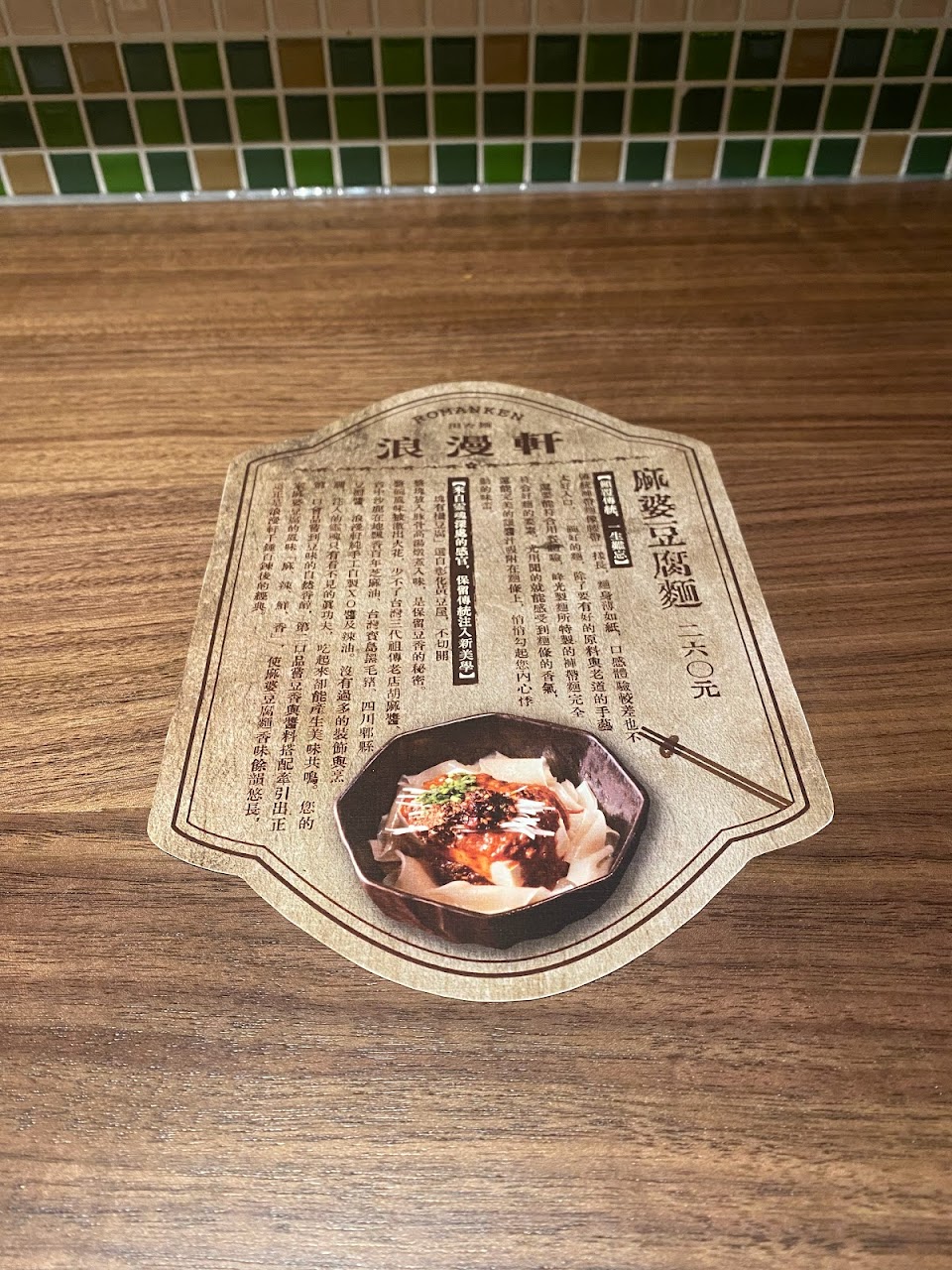 店家的裝潢走的是日本大正浪漫風格,是一間很精緻可愛的小店,只有13個位子,只賣兩種麵—日式擔擔麵及麻婆豆腐麵。