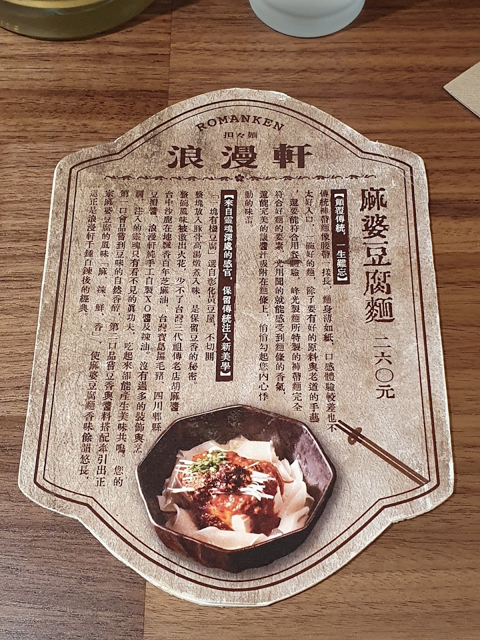 大正浪漫裝潢風格很吸引人,擔擔麵及麻婆豆腐麵都不到讓人驚艷的程度,反倒是九鬼鹹酥雞意外的好,外酥內嫩,最後把米加到剩餘的湯汁裡享用,很美味,女店員服務很親切。